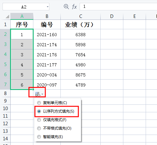 ①一般咱们填写序号,,那么只要在第一个单元格内输入数字1,然后按住单元格右下角的填充柄向下拖动,然后在【自动填充选项】选择【序列填充】就可以了;