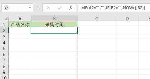 第二个 IF 函数的含义是,如果 B2 单元格为空,则显示 NOW 函数的值;否则返回原来的值。(避免因电脑时间改变,B2 单元格中的内容也变了。)