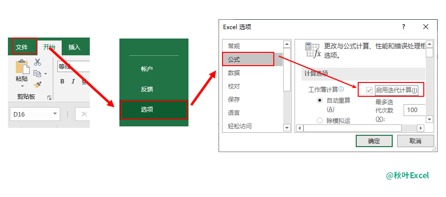 打开【文件】-【选项】-【公式】,勾选「启用迭代计算」,确定。