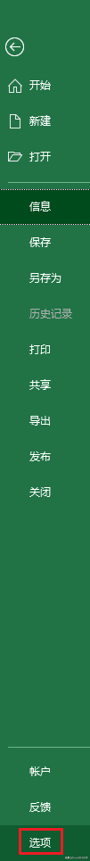 1. 选择菜单栏左上角的“文件”--> 在弹出的节目选择最下方的“选项”