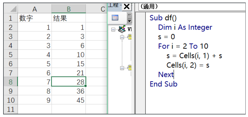 为了方便大家与VBA中的循环语句进行对比,现贴出VBA代码,以便用来对比学习。