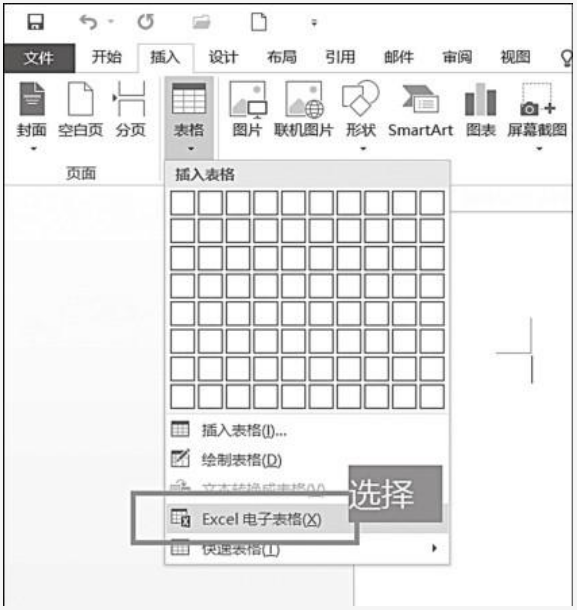 打开word2016文件,单击【插入】选项卡中【表格】组内的【表格】下拉按钮,在弹出的下拉列表中选择【Excel电子表格】选项。
