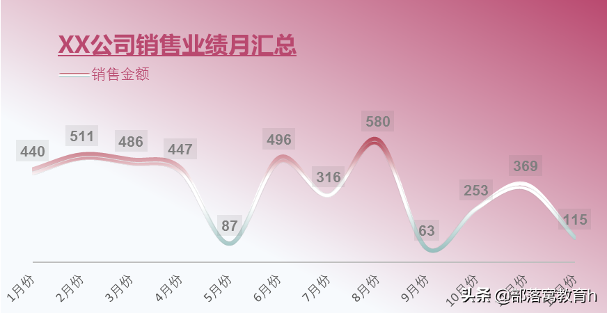 步骤5:把图表标题(RGB:185,73,111),系列1的数据标签,图例的位置,这些都调整好,就能得到我们一开始的成图了。