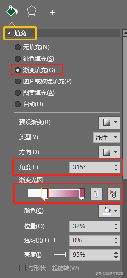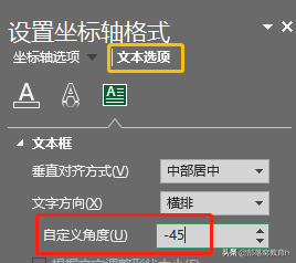 接着选择设置格式菜单中的“文本选项”,将自定义角度设置为-45: