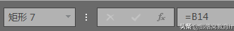 3.添加一个“矩形”形状,稍微长一点没关系,选中矩形,在“输入框”输入=B14。