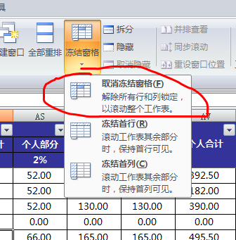 冻结拆分窗格