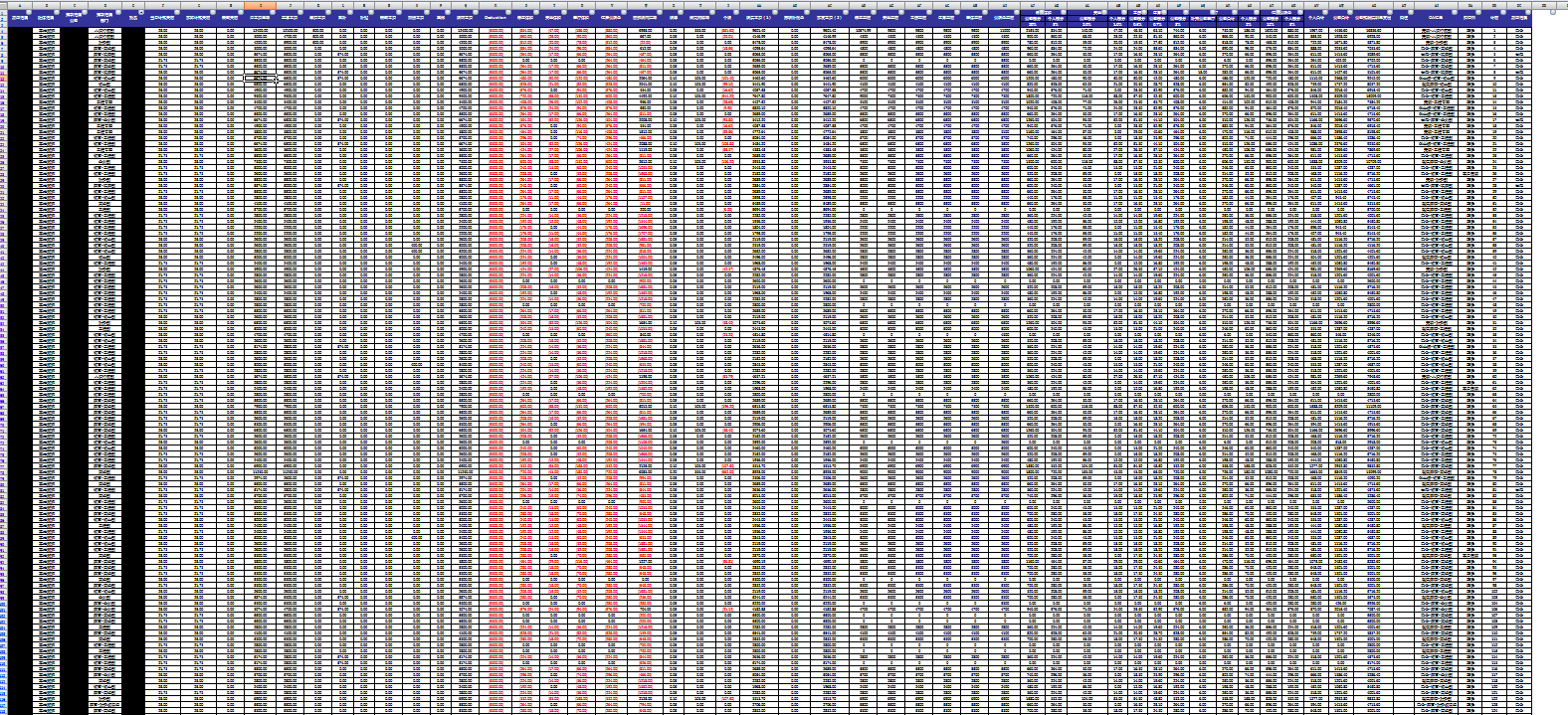 是的,这个表格一共有54列,191行。(黑块打码保密信息)