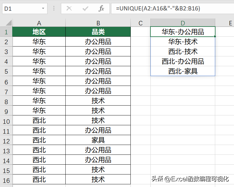 好在office在最新版本中新增了一个函数UNIQUE,轻松返回非重复值。