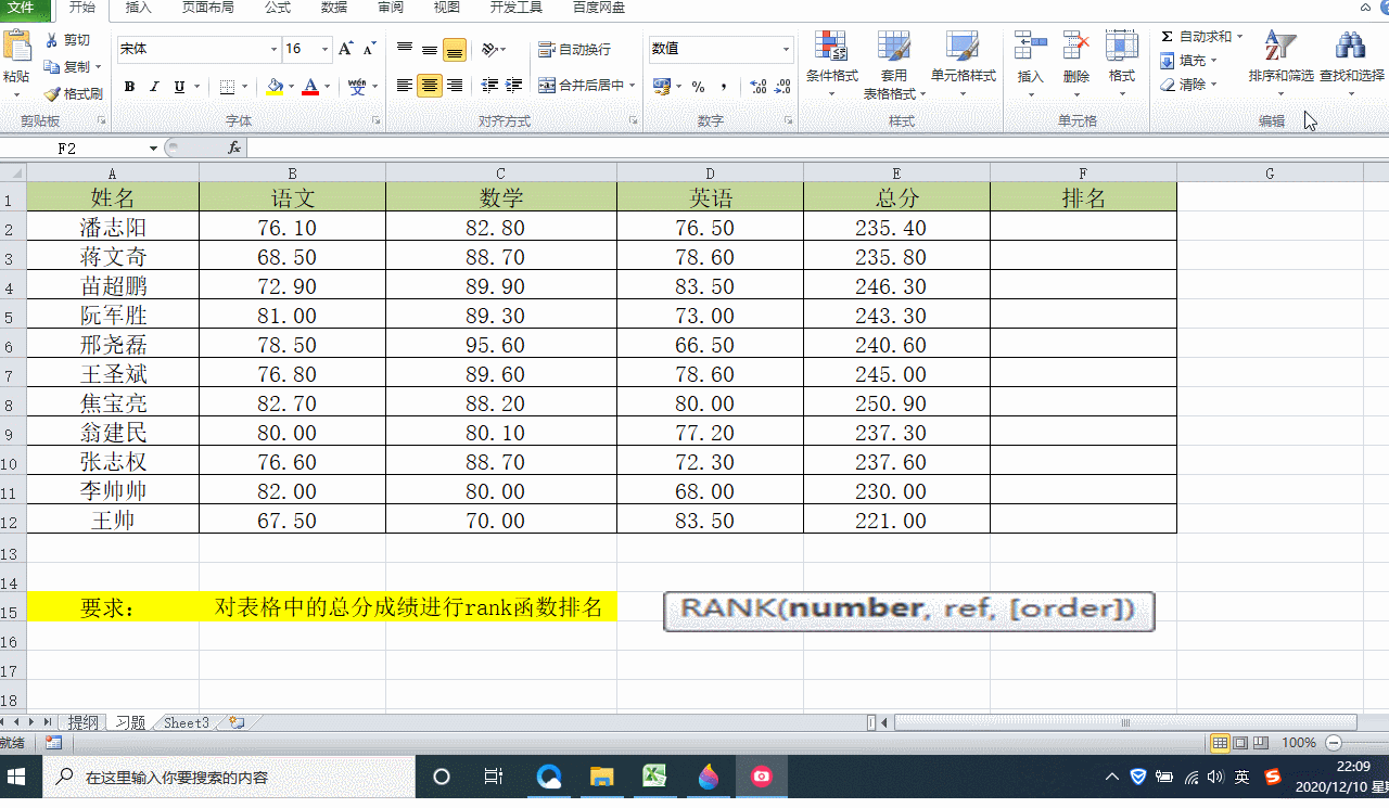 如图一所示,我们需要对这样的一个学生成绩表格,他们的一个总分成绩进行一个排名,根据它的一个要求去进行一个演示操作,那接下来多多就通过这个案例给各位,来用Excel函数rank,来给大家求值一波!
