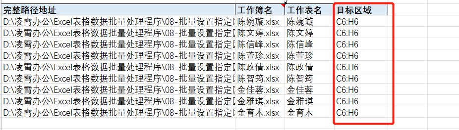 目前工作表要设置格式的区域就是C6:H6区域,将该地址设置到每行工作表对应的目标区域该列单元格当中。