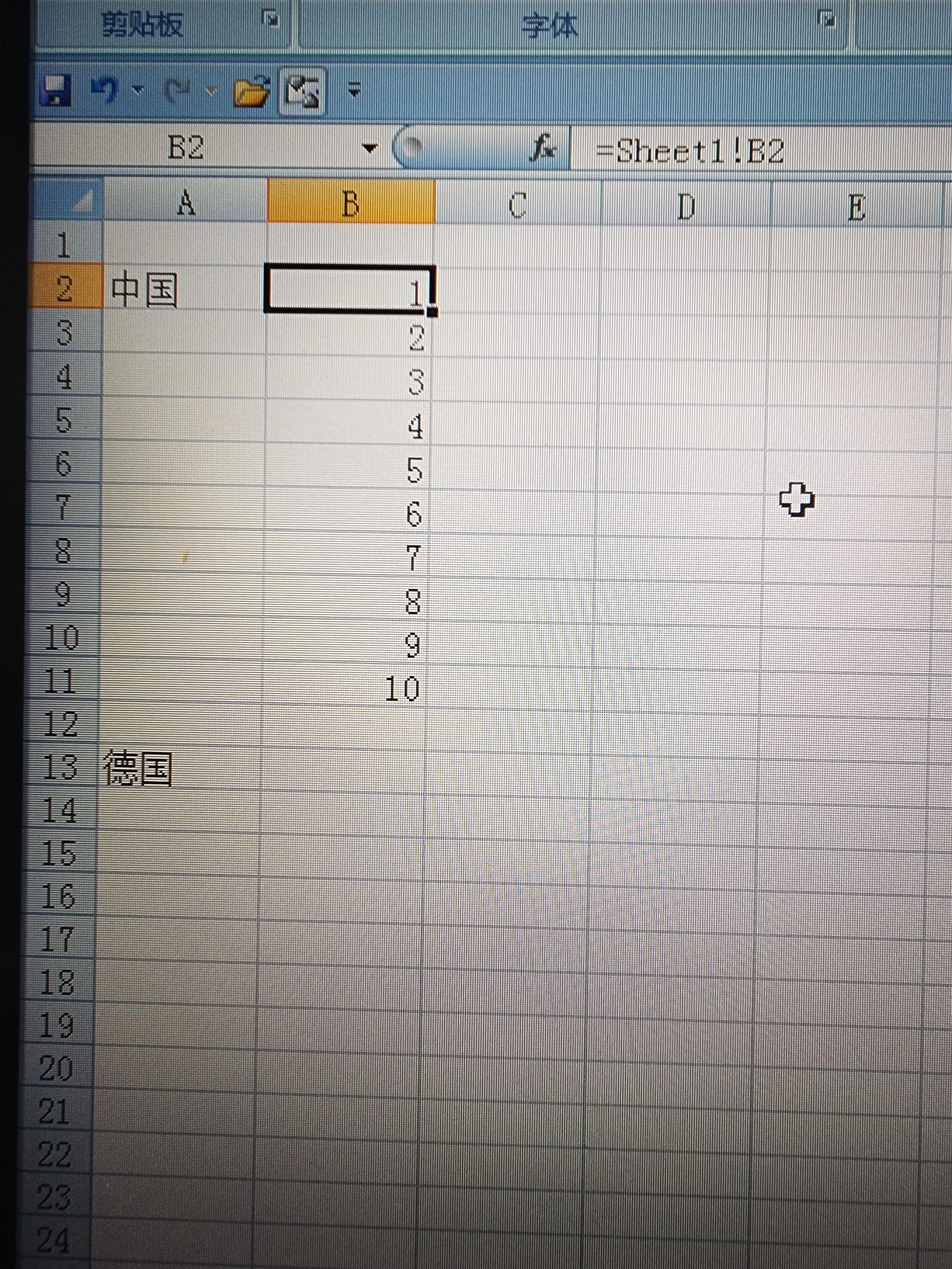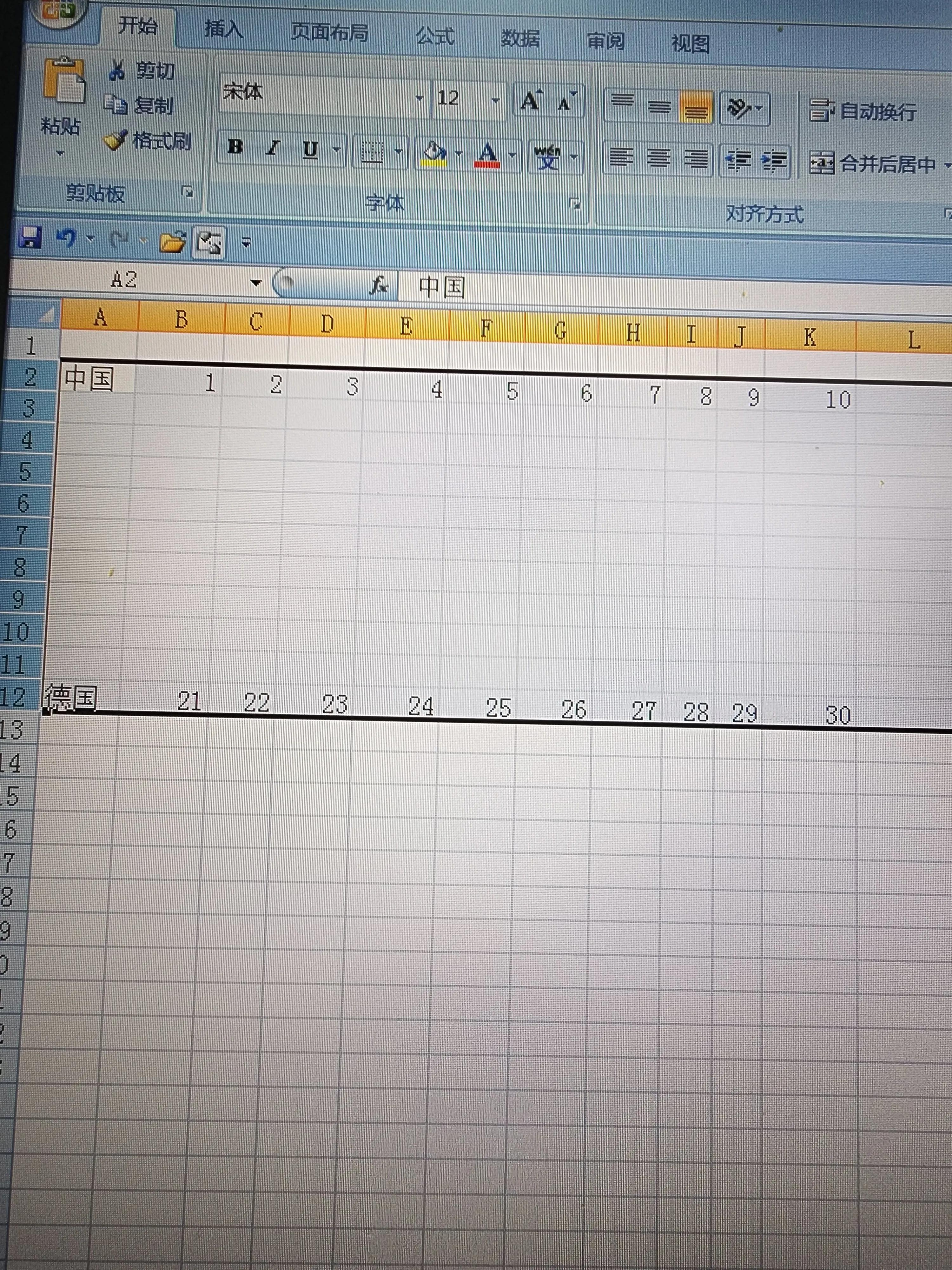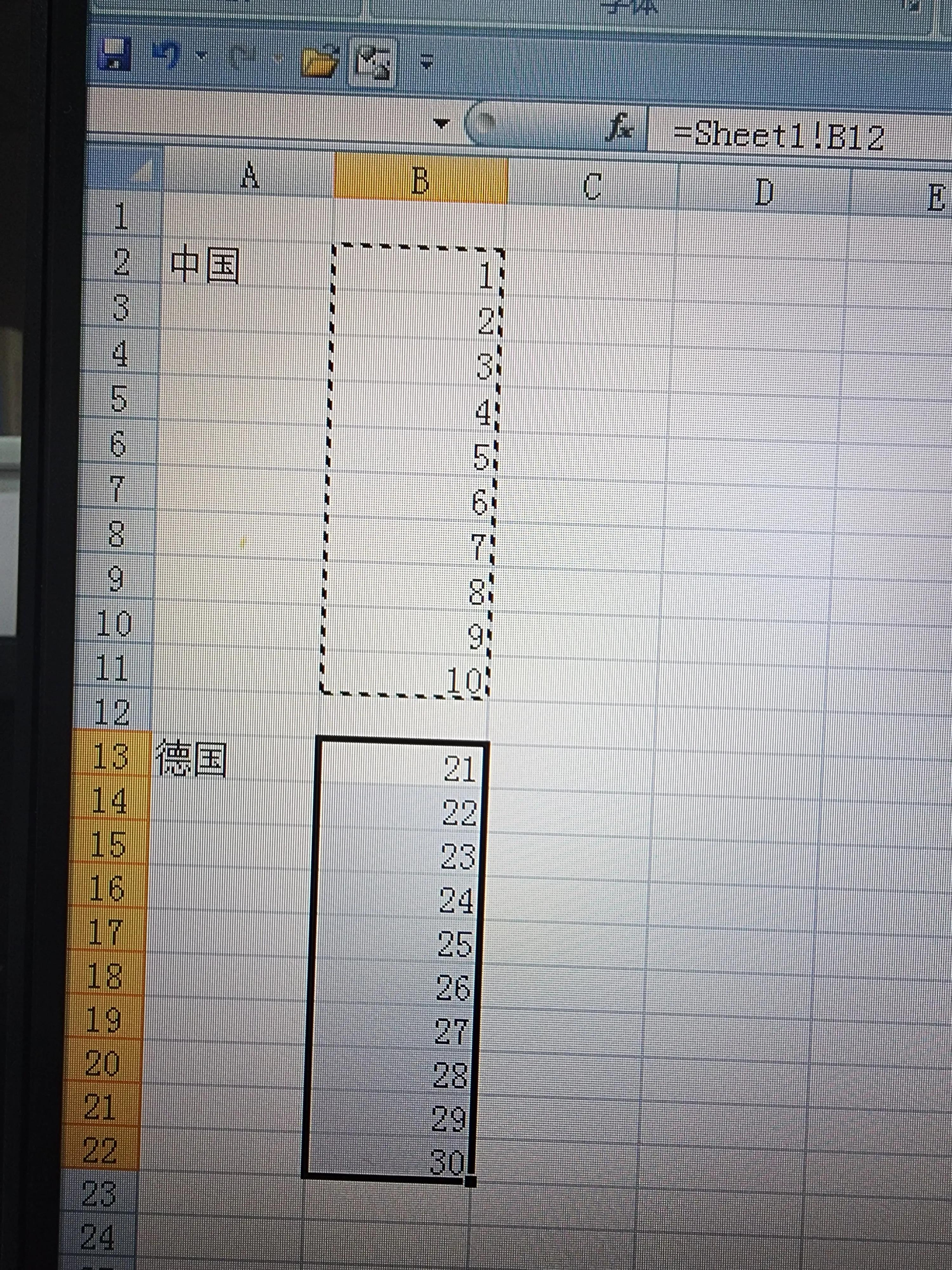 注意德国列数据为0,因为原来德国的行和中国的不同,是12行,中国是第二行。
