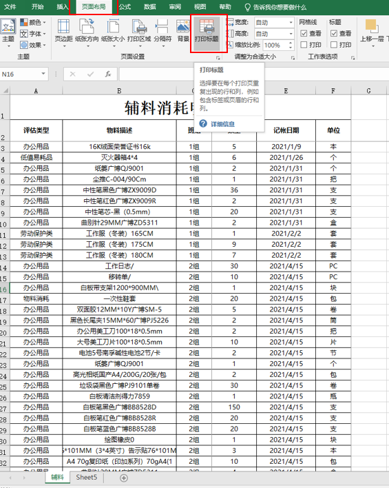 步骤1:单击菜单栏 “页面布局”---“打印标题”命令,见图1