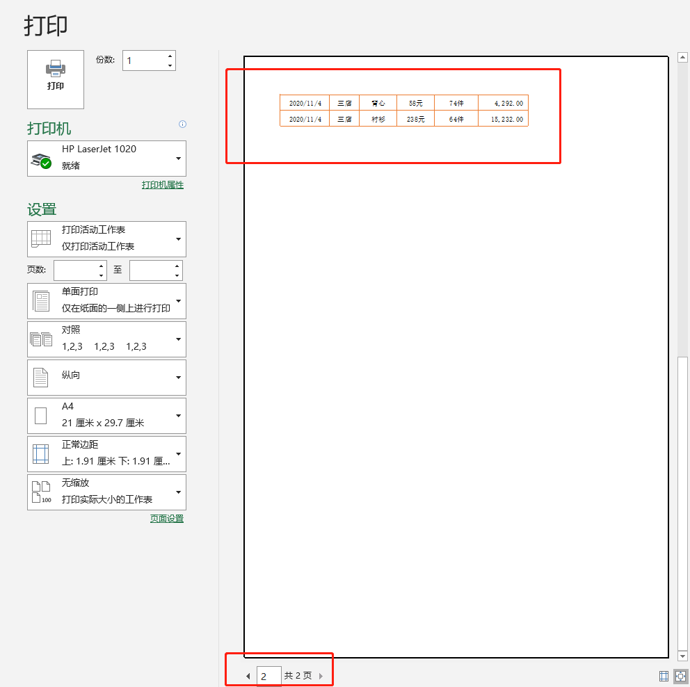 比如:表格预览时有2页(如下图),而第2页上只有两行,这种情况打印出来,既不节约纸张,数据查看也不方便,不如调整到一页纸上。