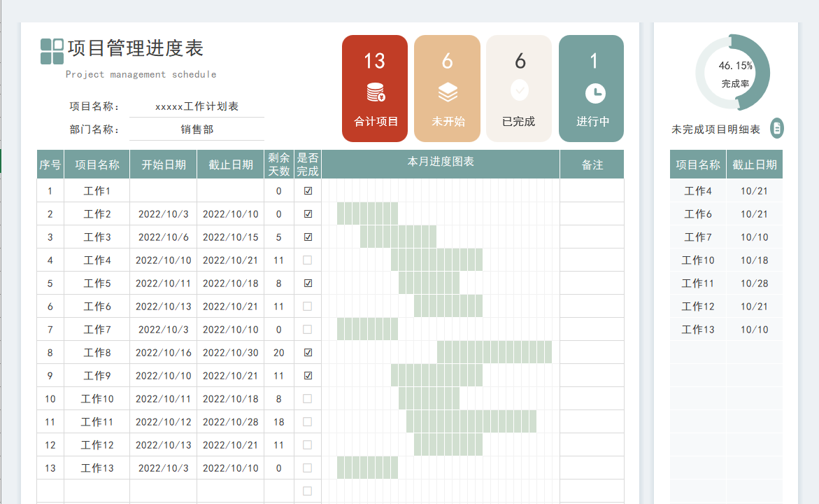 Hello大家好,我是帮帮。今天跟大家分享一张Excel项目管理进度表,动态函数统计,进度条同步更新,实用简单。