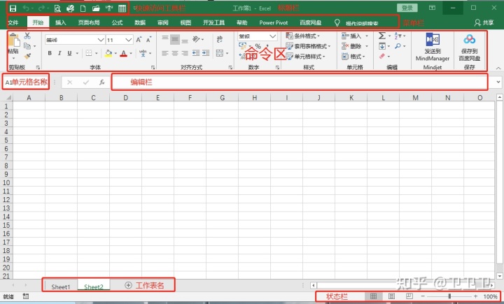 2、Excel工作界面