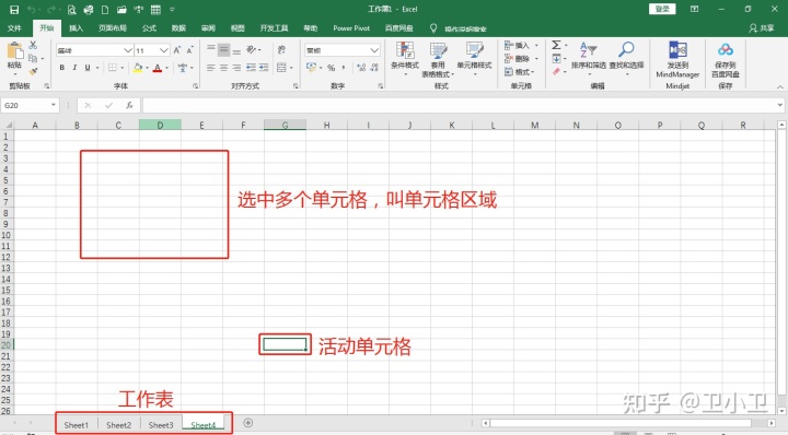 Excel有单个基本元素,工作簿、工作表和单元格。工作簿就是指Excel文件,打开工作簿有多个工作表,一个工作表中有若干个单元格。