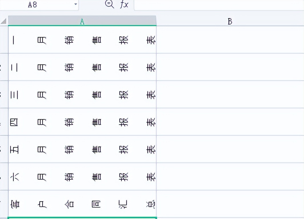 1、首先先将文件标签内容输入在表格中,然后选择全部内容,在工作栏【字体】前面加一个【@】符号,回车。