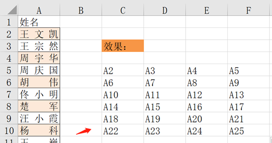 第二步:选中表中填充的C5:F6单元格数据区域,拖动填充柄向下填充,如下图所示: