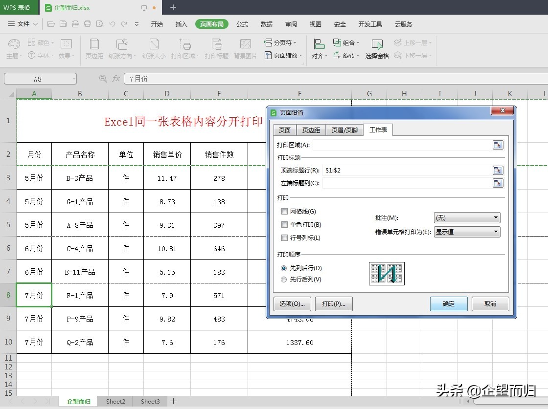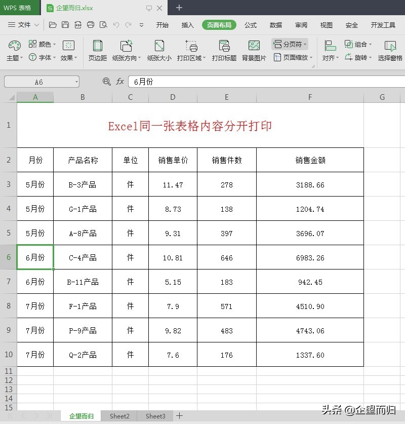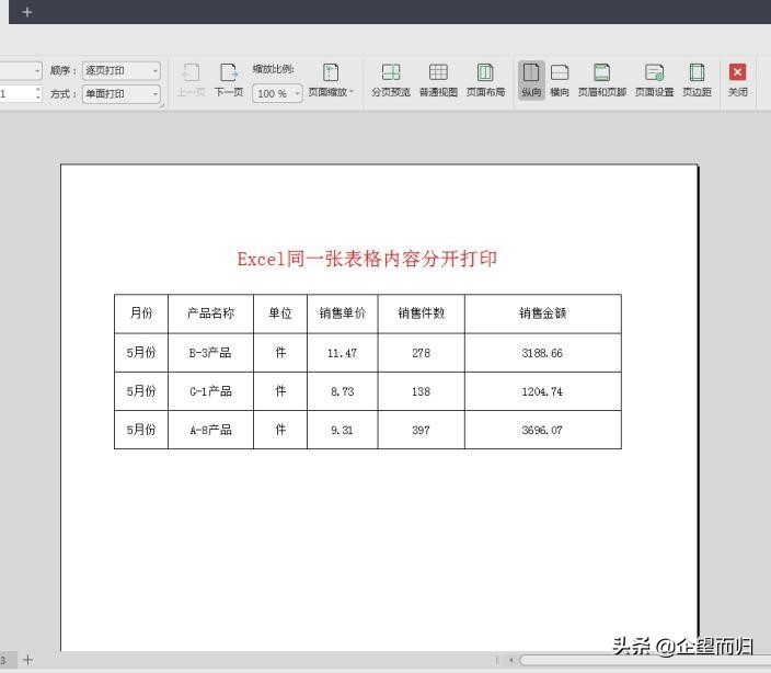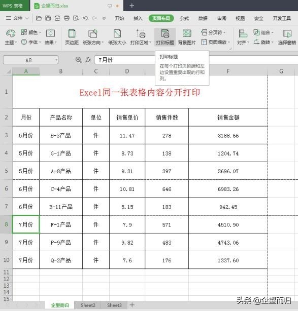 大家好,在同一张Excel表格中,有些数据按时间或者月份等需要分开进行打印,这时候需要在表格中进行设置,今天为大家介绍如何Excel同一张表格内容同时分页打印