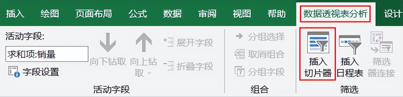 如果要看门店每个月的订单量和销售额情况,可以在数据透视表分析选项卡下插入切片器。