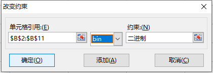 添加的条件里面,使得B2:B11单元格为二进制的值,也就是非0即1