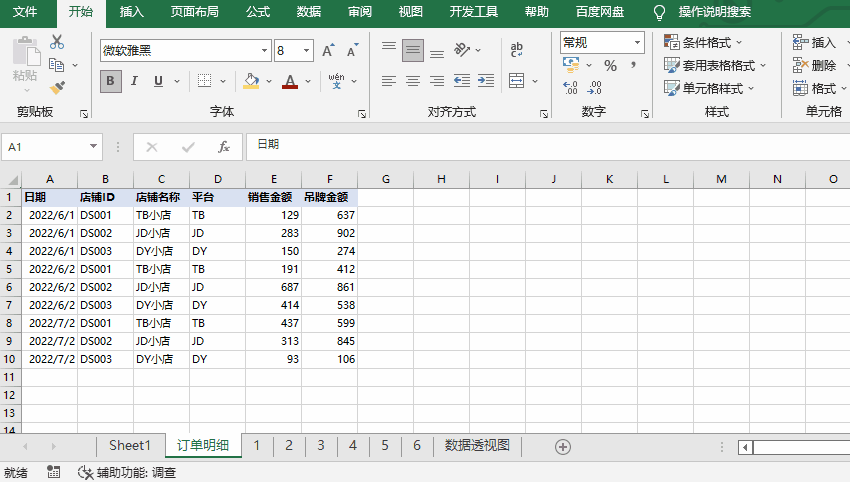 在使用个Excel数据透视表时,数据来源常常是Excel中某一片数据区域,这片数据区域有明确的行标题、行数、列数等等。例如下面这个单元格区域,点击菜单栏下面的插入数据透视表,即可生成一张数据透视表。