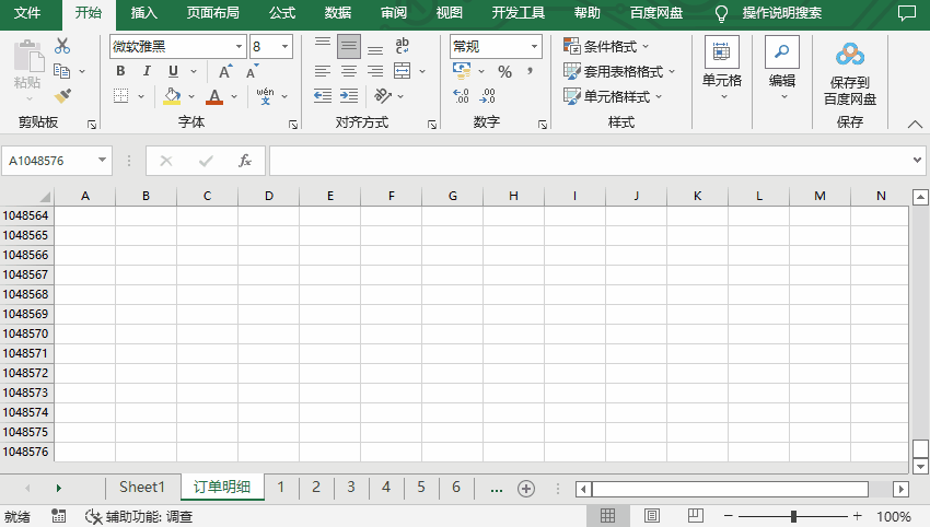 通过下拉滚动条,或者使用快捷键Ctrl ↓,来到Excel表格的最底部,可以发现Excel本身的行数是有限制的,最大行数是1,048,576,也就是2的20次幂。