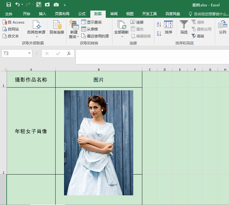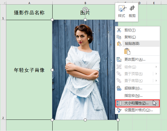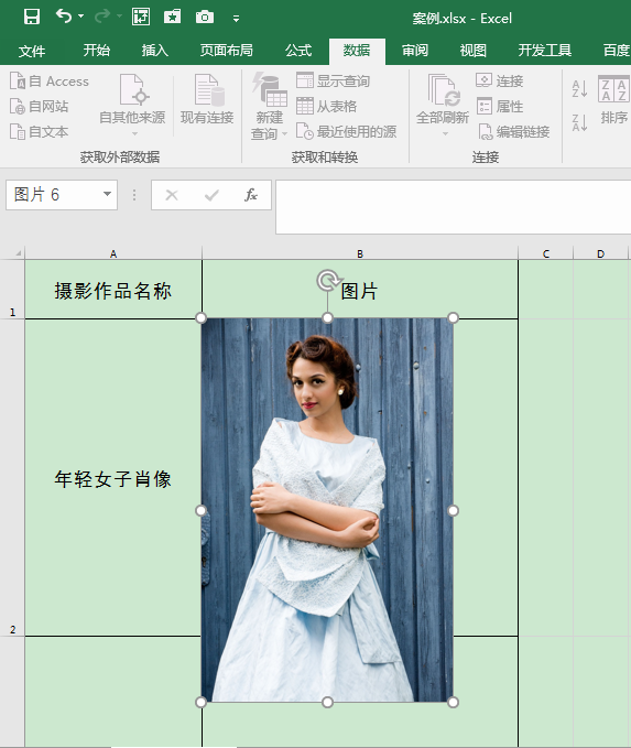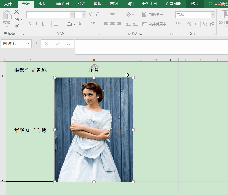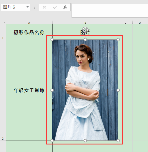 下图工作表B2单元格中插入了一张摄影图片,接下来我们想要实现的效果是让图片随B2单元格的变化同步改变大小。
