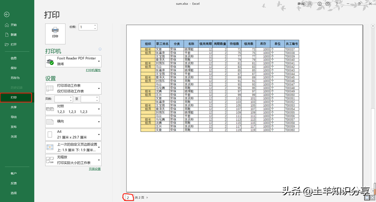 然后点击工具栏【文件】在打印预览中就可以看到第二页以后也都有标题出现了。