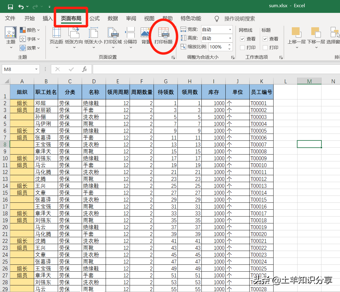 打开你想要打印的Excel表格,在工具栏选中【页面布局】然后点击【打印标题】。