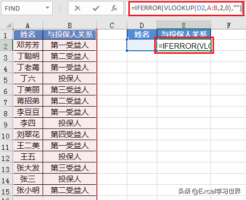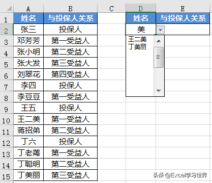 相比前一种方法,效果更佳,不需要排序“姓名”列,还可以查找姓名中间的任何一个字。