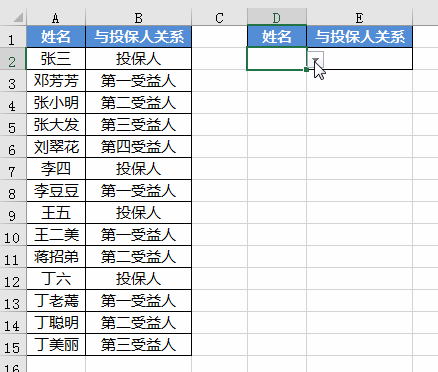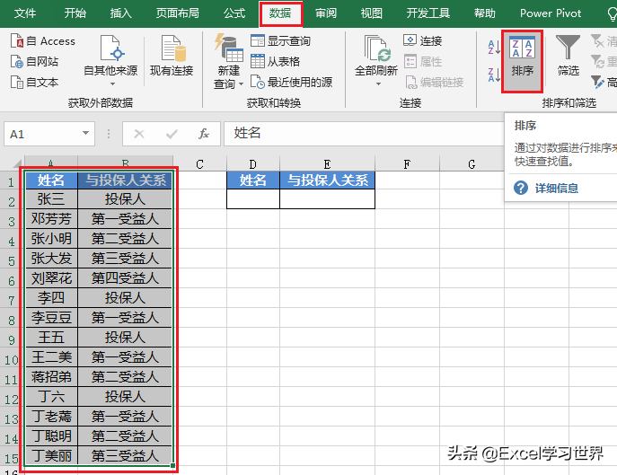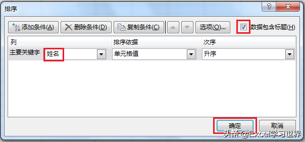 - “姓名”列必须排序,如果顺序打乱,查询结果会出错