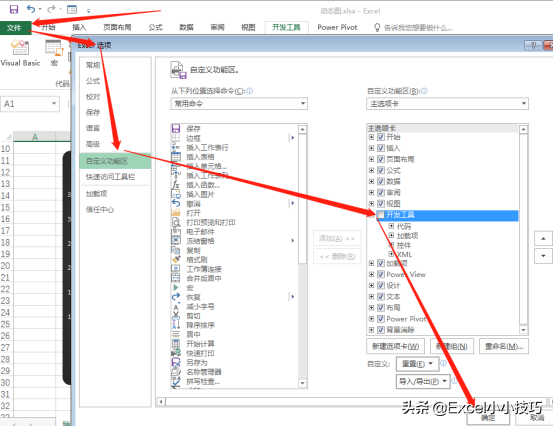 文件→选项→自定义功能区→勾选开发工具前的对号→确定。