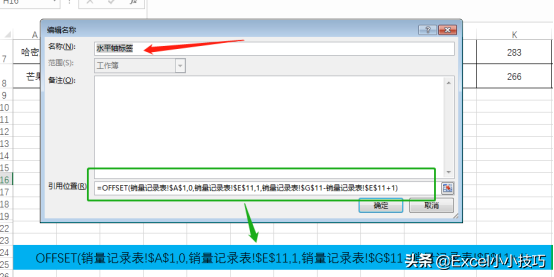 Ctrl+F3打开名称管理器→选择新建→名称输入“水平轴标签”→引用位置输入下面的公式→确定。