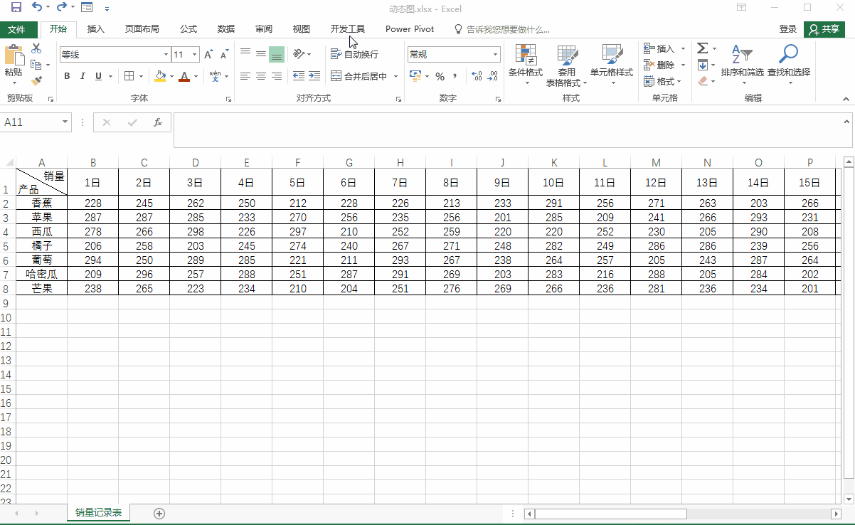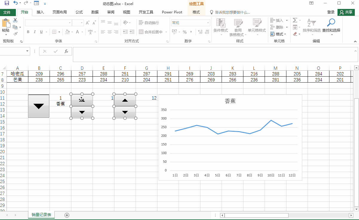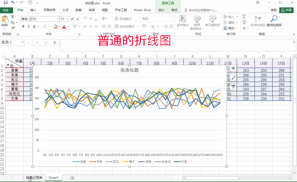 在Excel表格中折线图可以直观的显示数据。但是当数据很多时,折线图会显得杂乱无章、并不能直观的显示数据。这篇文章为朋友们分享用OFFSET函数、控件、定义名称制作动态折线图。其可以通过控件控制折线图,只显示我们想要的数据。今天我们通过如下图所示的水果销量记录表来一起学习动态折线图的制作。