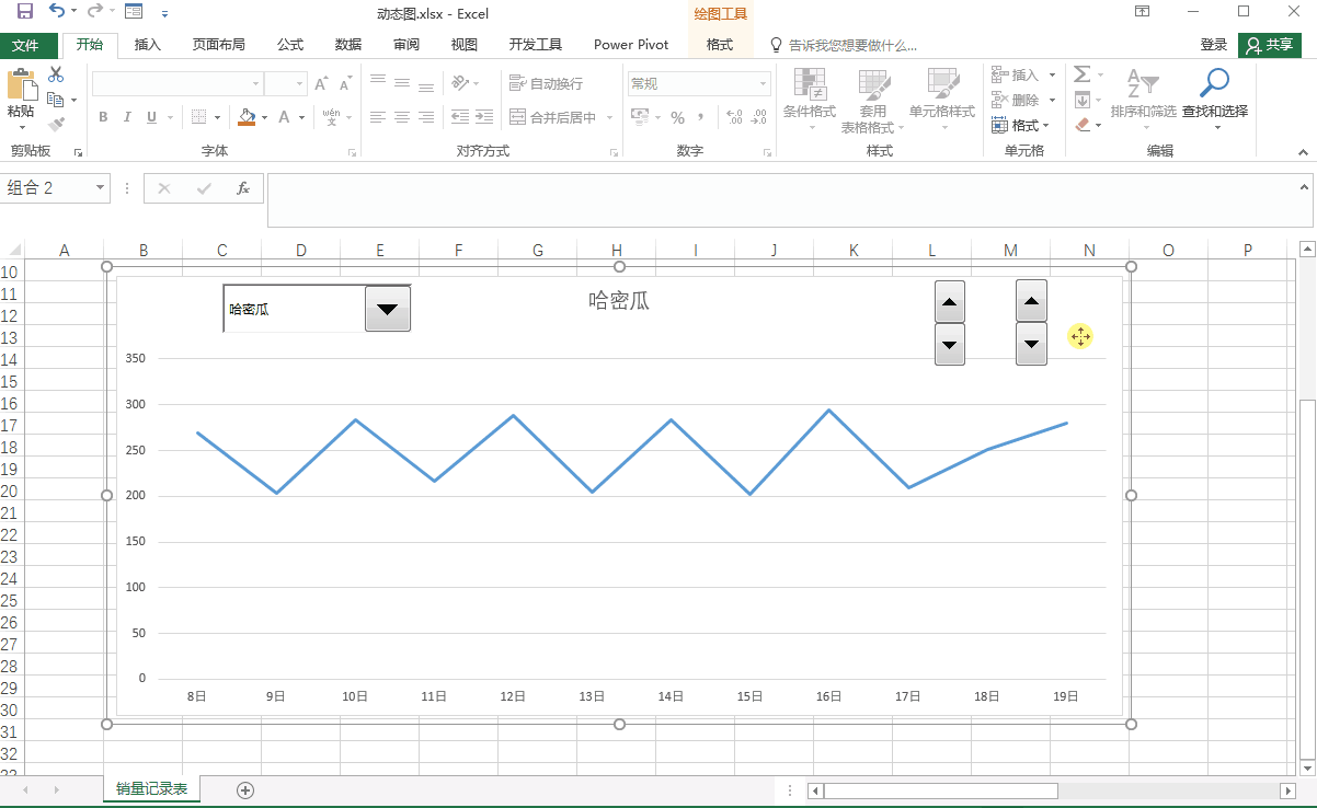 按住Ctrl键选择所有控件和折线图→鼠标右键单击→组合→确定→调整控件和折线图的位置,使其美观。