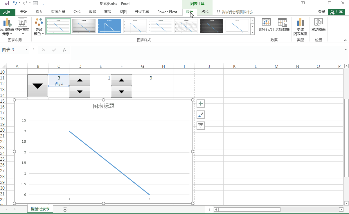 通过选择组合框下的水果品种和调整两个数值调节钮的值就可以实时控制折线图显示的数据。