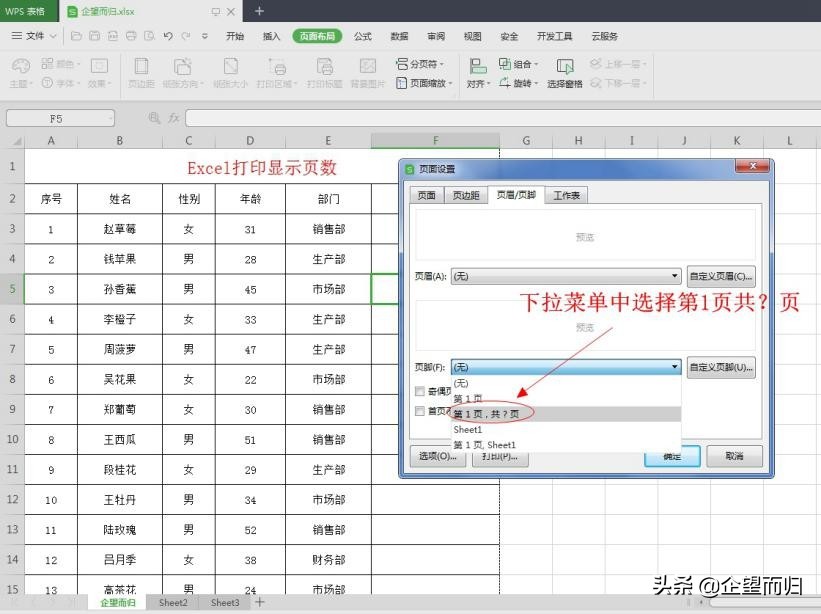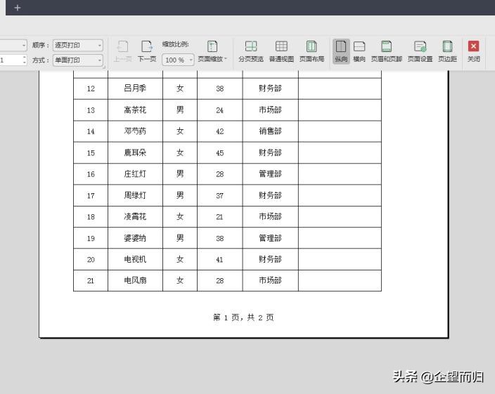 在打印预览中查看,现在表格中已经添加了页码