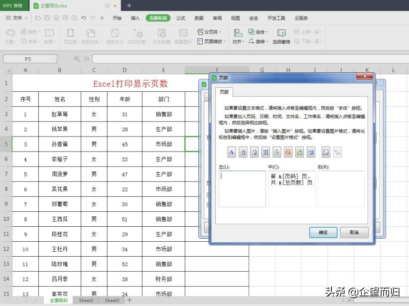 打开自定义页脚,在中间显示页码,然后确定