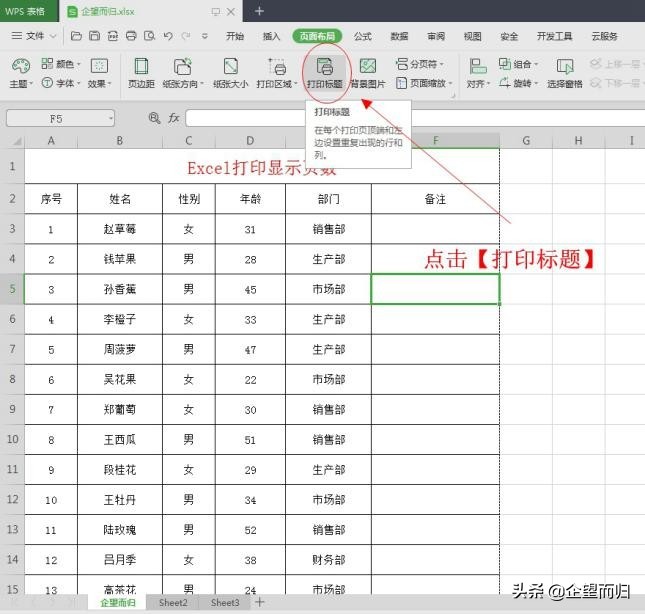 点击【打印标题】