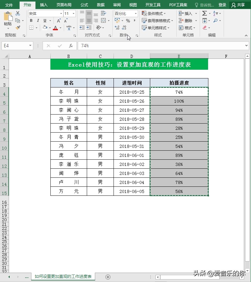 以上是Excel中设置更加直观的工作进度表的操作步骤及讲解的全部过程,完成的效果如下图所示。你学会了么?我是「僾伱骤」关注我学习更多Excel使用技巧。