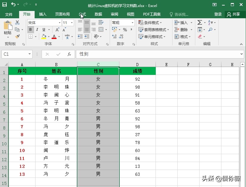 首先,打开Excel表格选中要进行操作的列,在此实例中选择“C列”即可;如图所示: