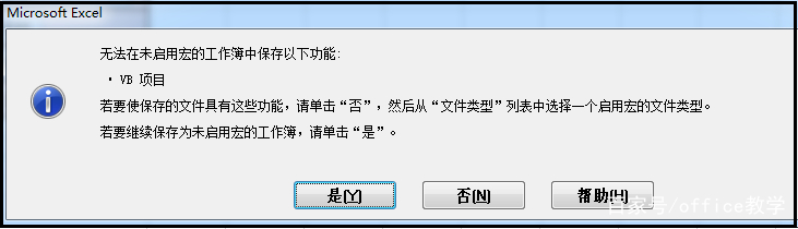 所以,根据提示,我们需要将文件另存为启用宏的工作簿类型,即.xlsm格式文件,