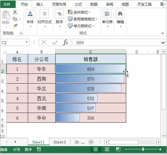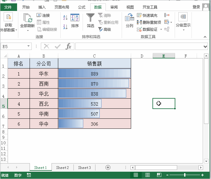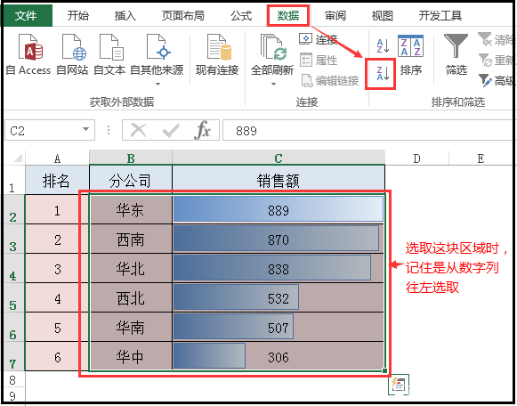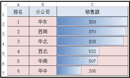 比如,以下表格,为各分公司对应的销售额,且各分公司按销售额大小从大到小进行排序。