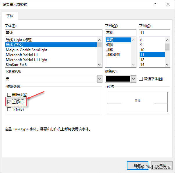 (3)在"设置单元格格式"对话框的"特殊效果"选项组中勾选"上标"复选框,如图3所示。