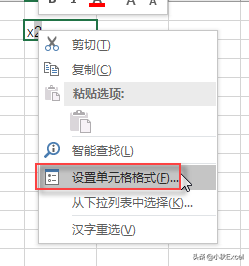 (2)选中数字"2",单击鼠标右键,在快捷菜单中选择"设置单元格格式"选项,如图2所示。