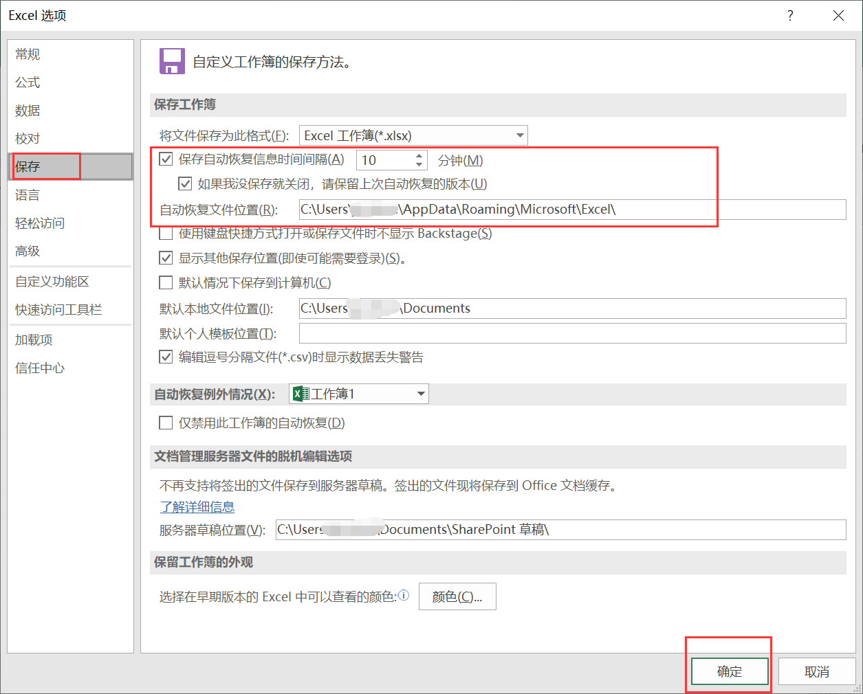 注:建议大家设置的自动保存的时间不要间隔太短,否则可能会造成Excel卡顿。