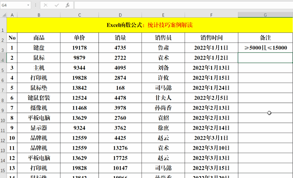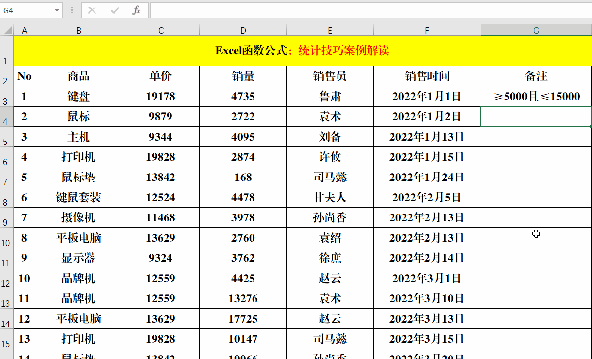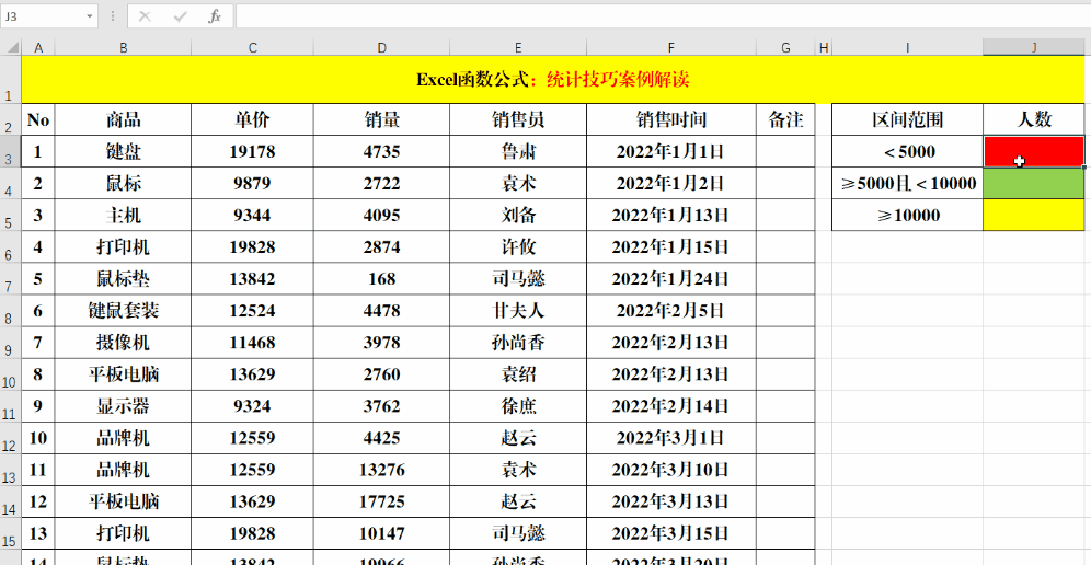 目的1:统计<5000,≥5000且<10000,>10000的销售人数。