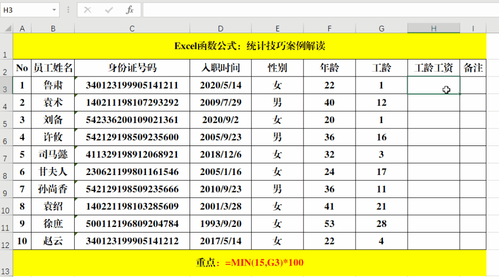 目的4:计算员工的工龄工资,工龄工资≤15年,每年增加100元,>15年之后,不再累加。