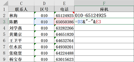 4、用于连接多个单元格数据,之间用固定符号隔开。